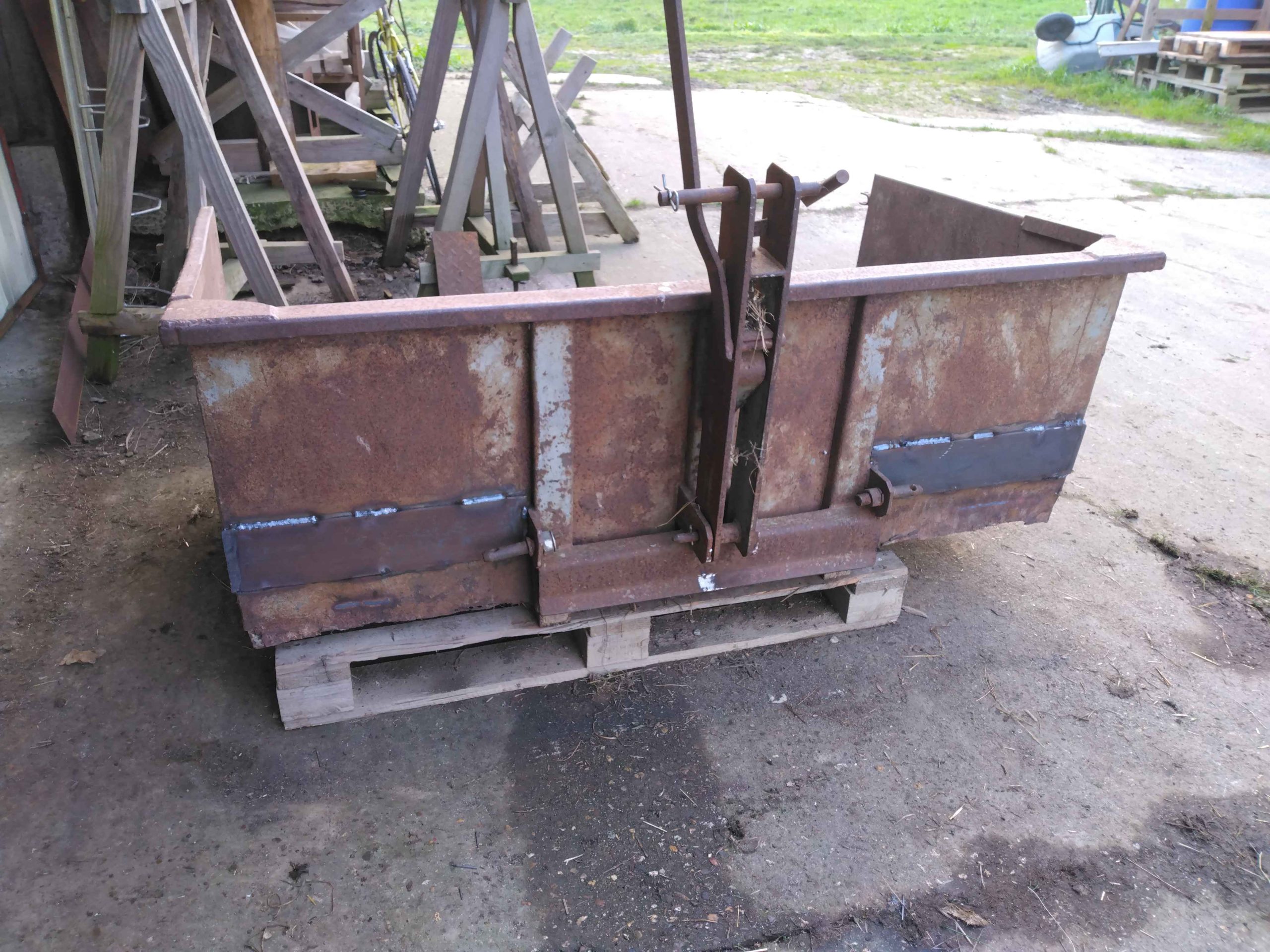 Réadaptation d’une benette : renforts en tôle et création d’un biseau pour faciliter le chargement de matière en marche arrière.
